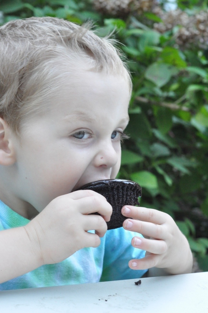 Sean picked out dinner. We had grilled sweet potatoes and squash and coconut mango mahi mahi he picked out at Whole Foods. Leftover cupcakes from the party for dessert. We even ate outside in the beautiful weather. Someday we will have an outdoor dining area, until then we managed!