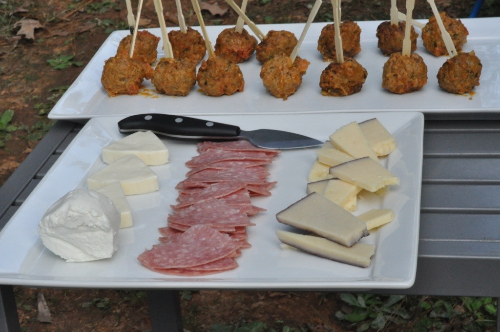 Now that the weather cooled off and it isn’t too hot outside anymore we enjoy eating on the porch. Picnics are always good inside too, we call them carpet picnics! Even better if you wait til the kids go to bed and enjoy some adult time. Our favorites are simple: a variety of cheeses, salami, grapes, apples, crackers, fresh bread…. The possibilities are endless. Of course cocktails or wine for the adults, kiddie cocktails for the kids. Sean and Ewan recently discovered a love for pâté too!