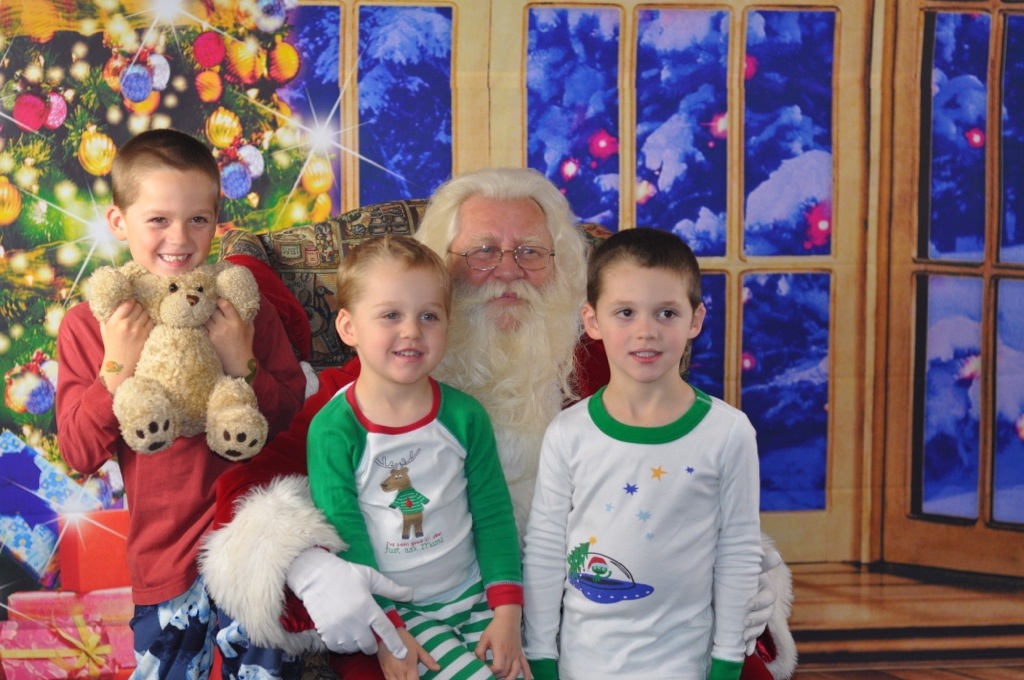 Here are all the boys with Santa, plus Bethel the bear (Jack was super kid this week at school and has the class stuffed bear).
