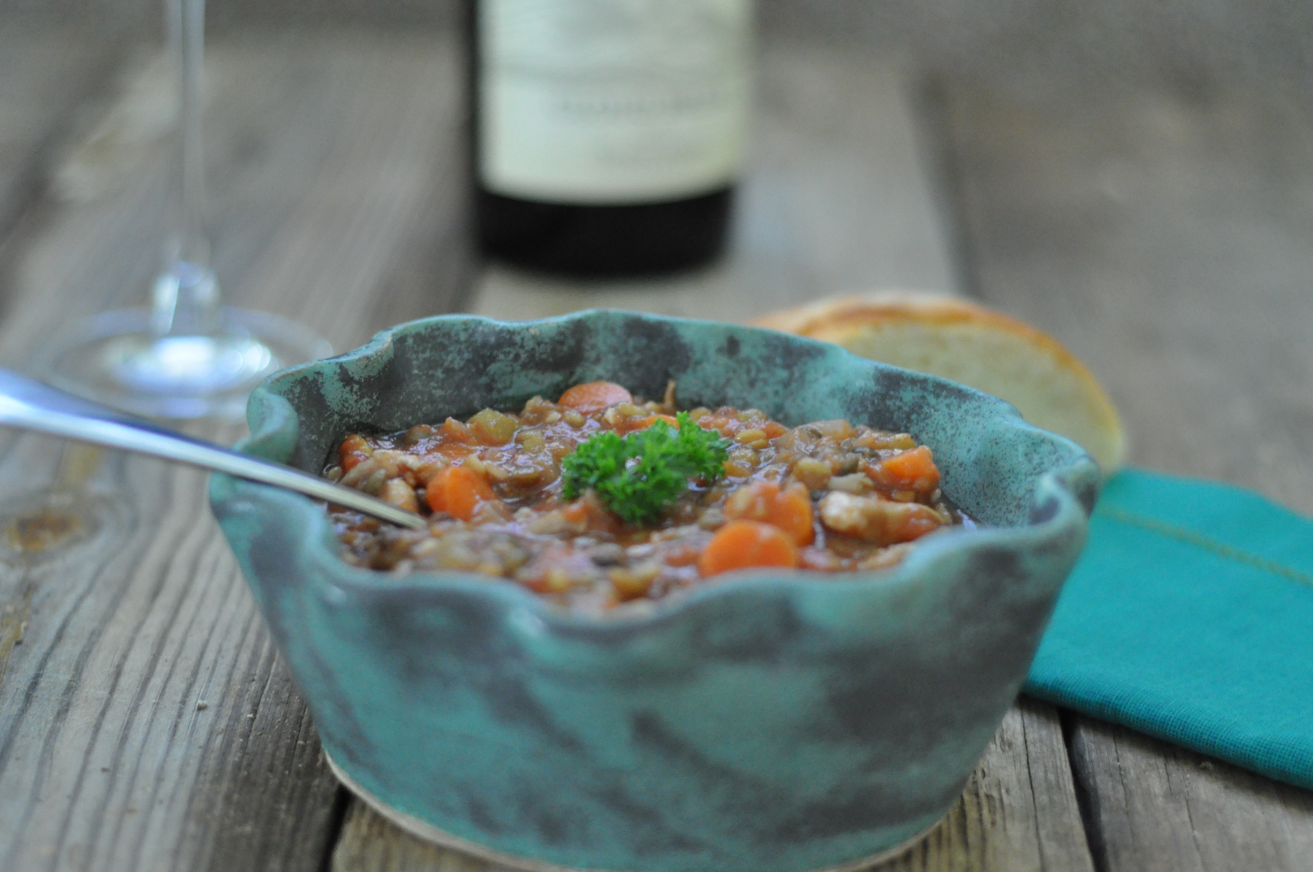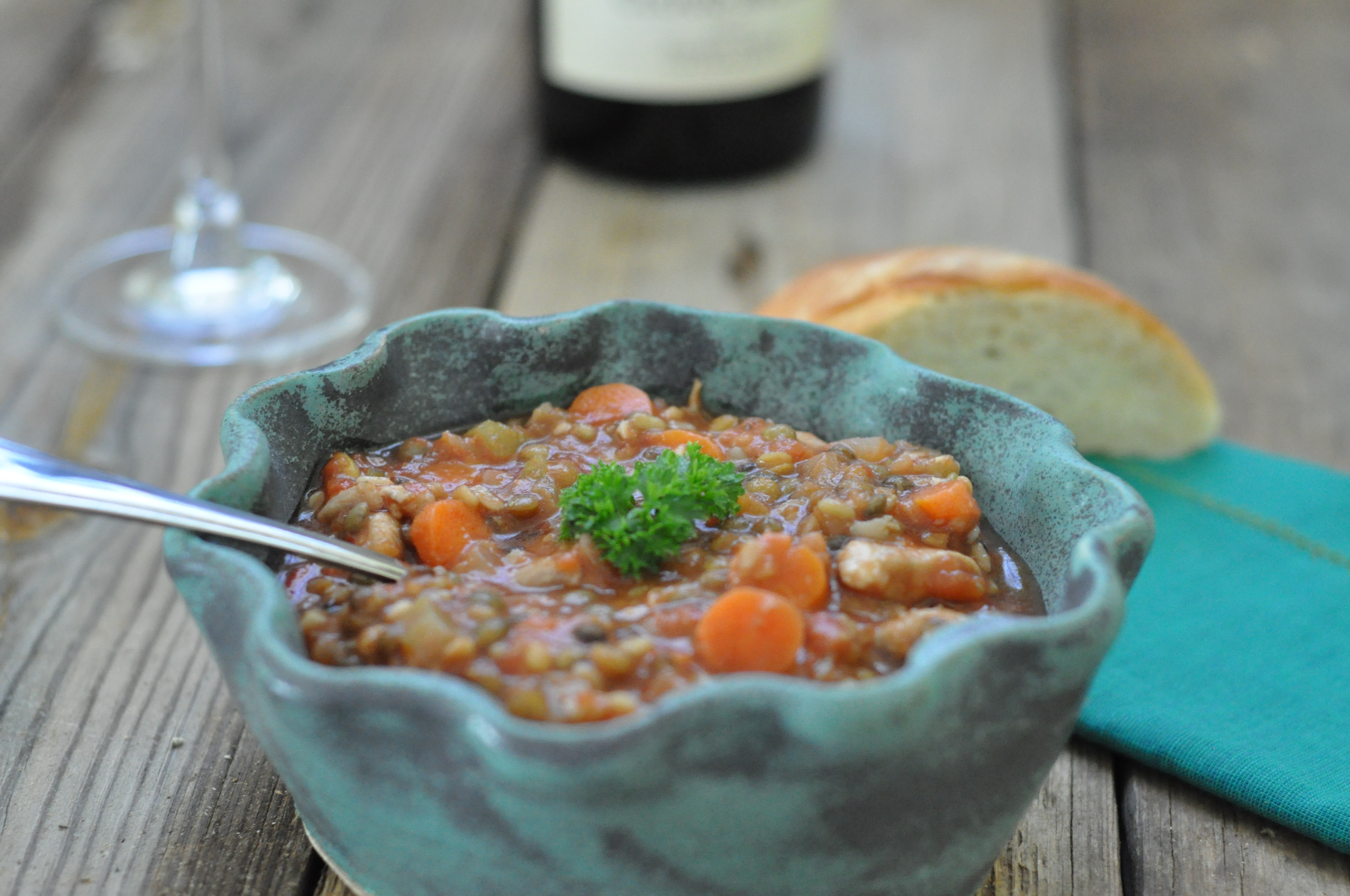 This chicken and lentil stew has become a winter favorite in our house. It is quite tasty and good for you. The lentils provide a good amount of fiber which is always good for me. There is also lots of protein and it is relatively low fat. The fresh herbs give it a nice flavor, plus there are so many herbs that work in this recipe. My favorites are thyme and rosemary, especially since I have them in the garden year round.