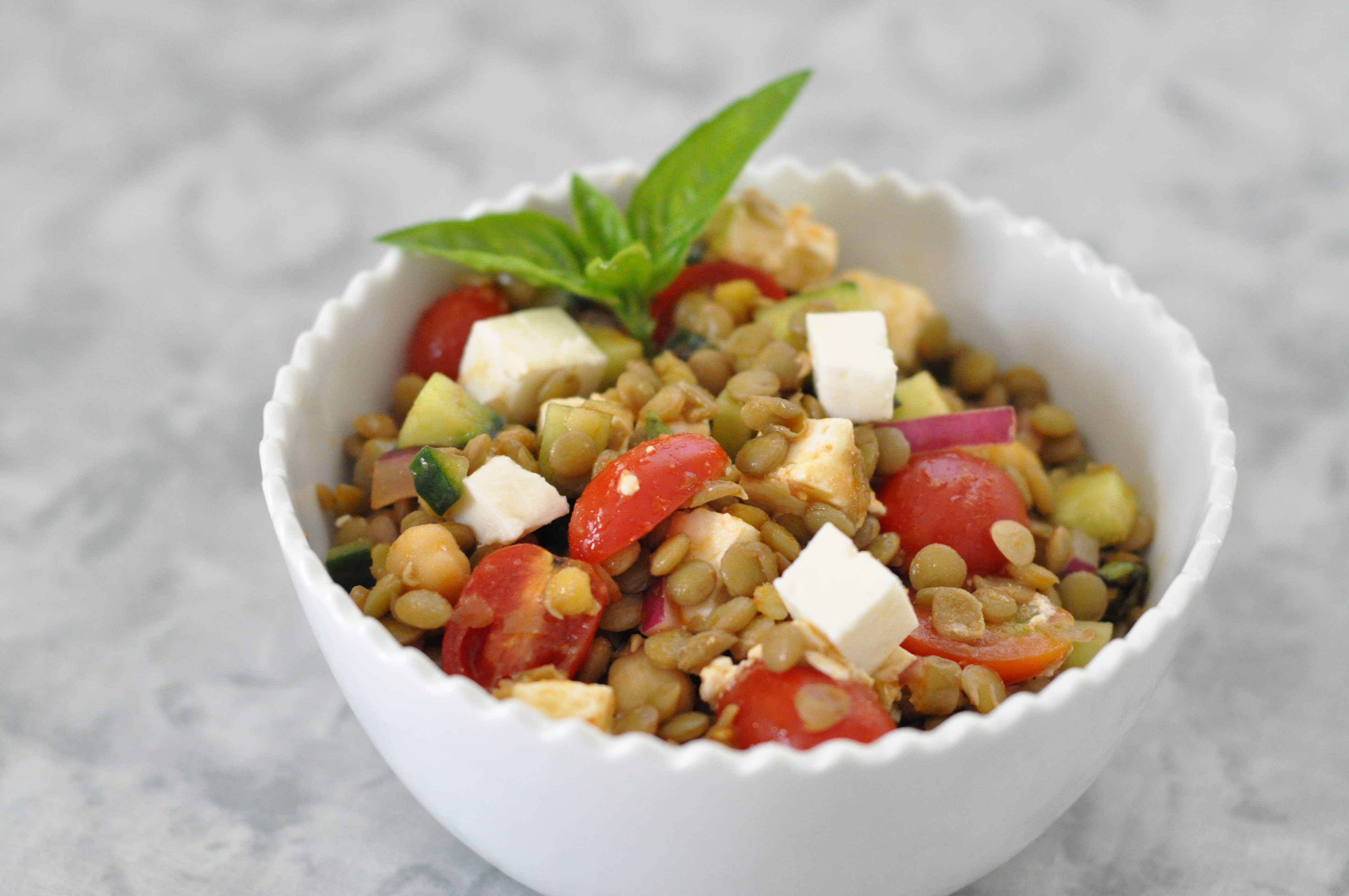If all goes well I do all my prep work earlier in the day and just need to heat things up when we get home. Or better yet, I make a salad like this Mediterranean lentil salad. Make it in the early afternoon, throw it in the fridge and you are good to go.