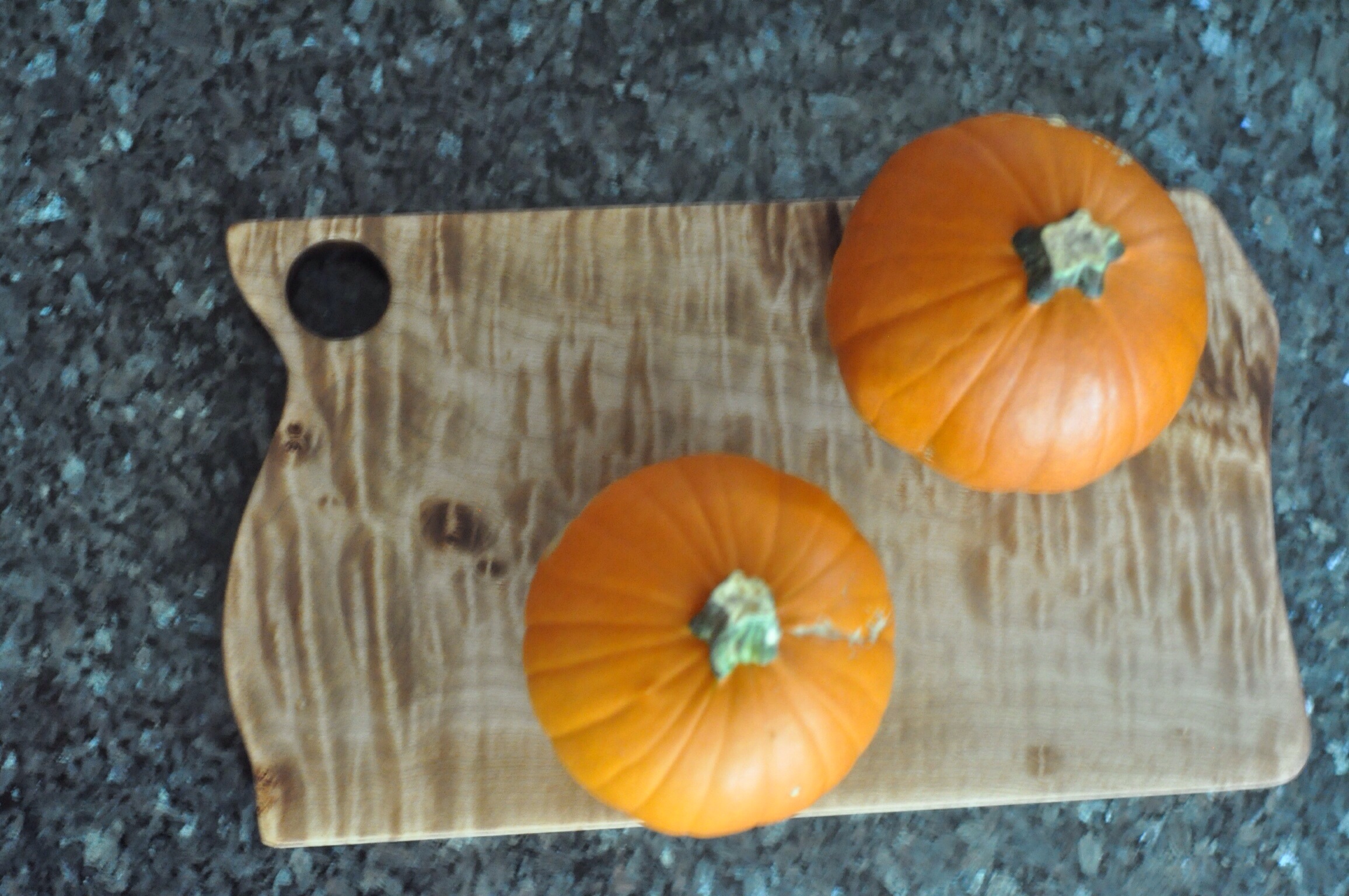 And finally here is my new cutting board from Michael’s Woodcraft. I absolutely adore it and can’t wait to use it more on the blog and for entertaining. It is pictured with two baking pumpkins I bought at Trader Joe’s yesterday. I don’t have high hopes of my pumpkin plants producing anything and yesterday was the first day of October….I can’t wait any longer and must begin baking with pumpkin!