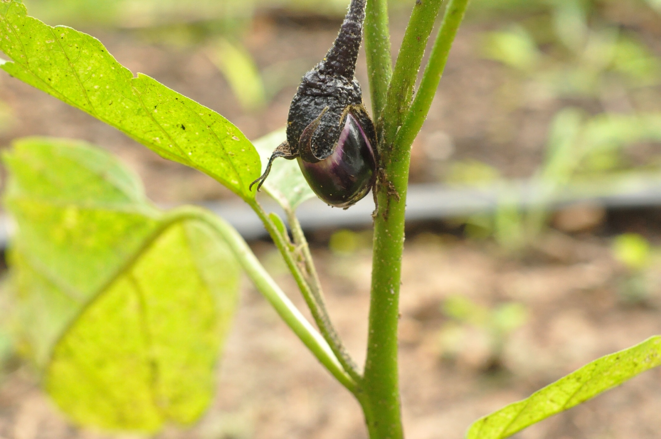 This is our first year trying to grow eggplant. Not sure how this little guy is going to do….