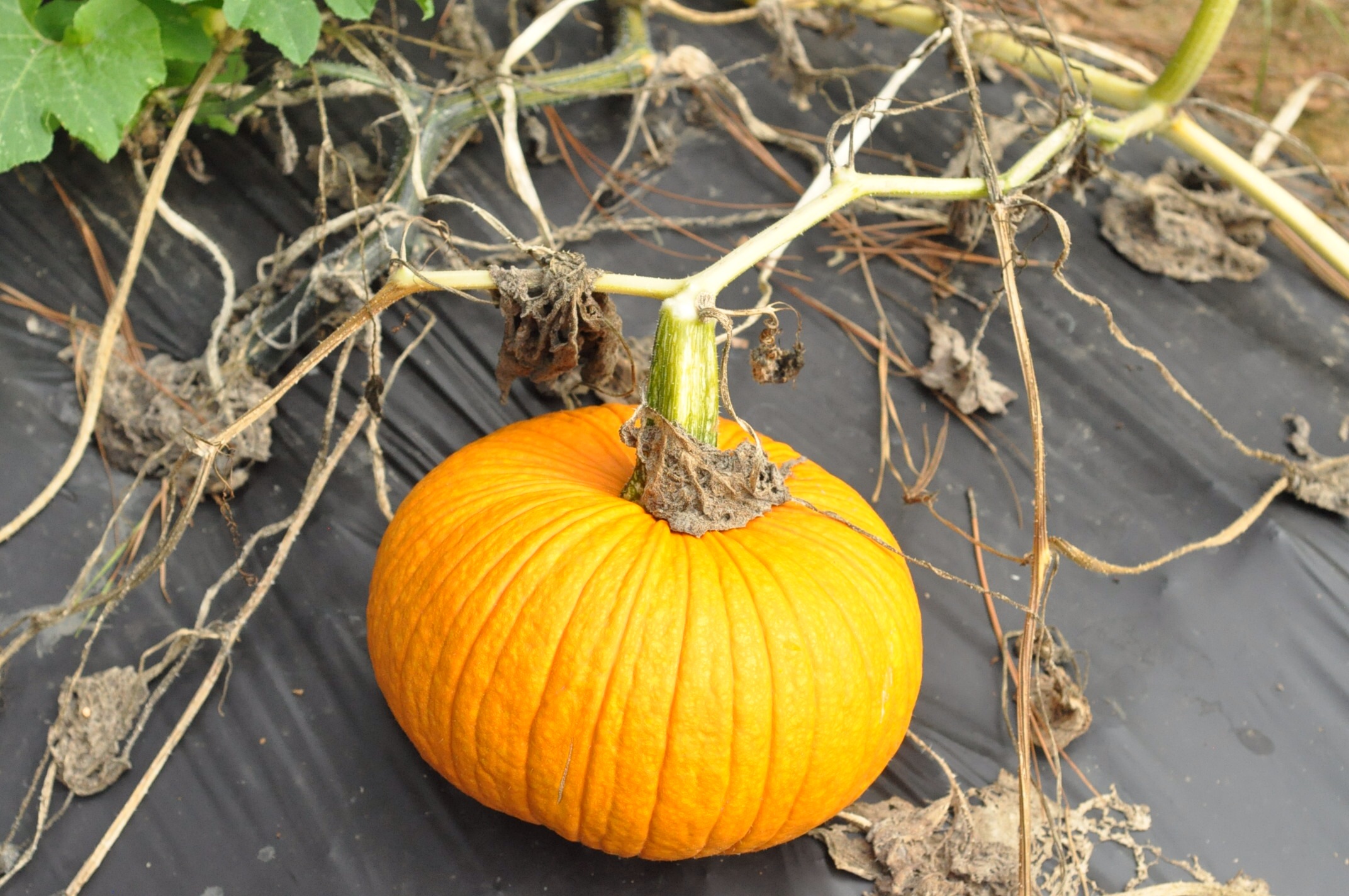 We also have one lonely pumpkin. Somehow nothing else grew on the vine. I recently planted more so fingers crossed I can roast pumpkin this fall!