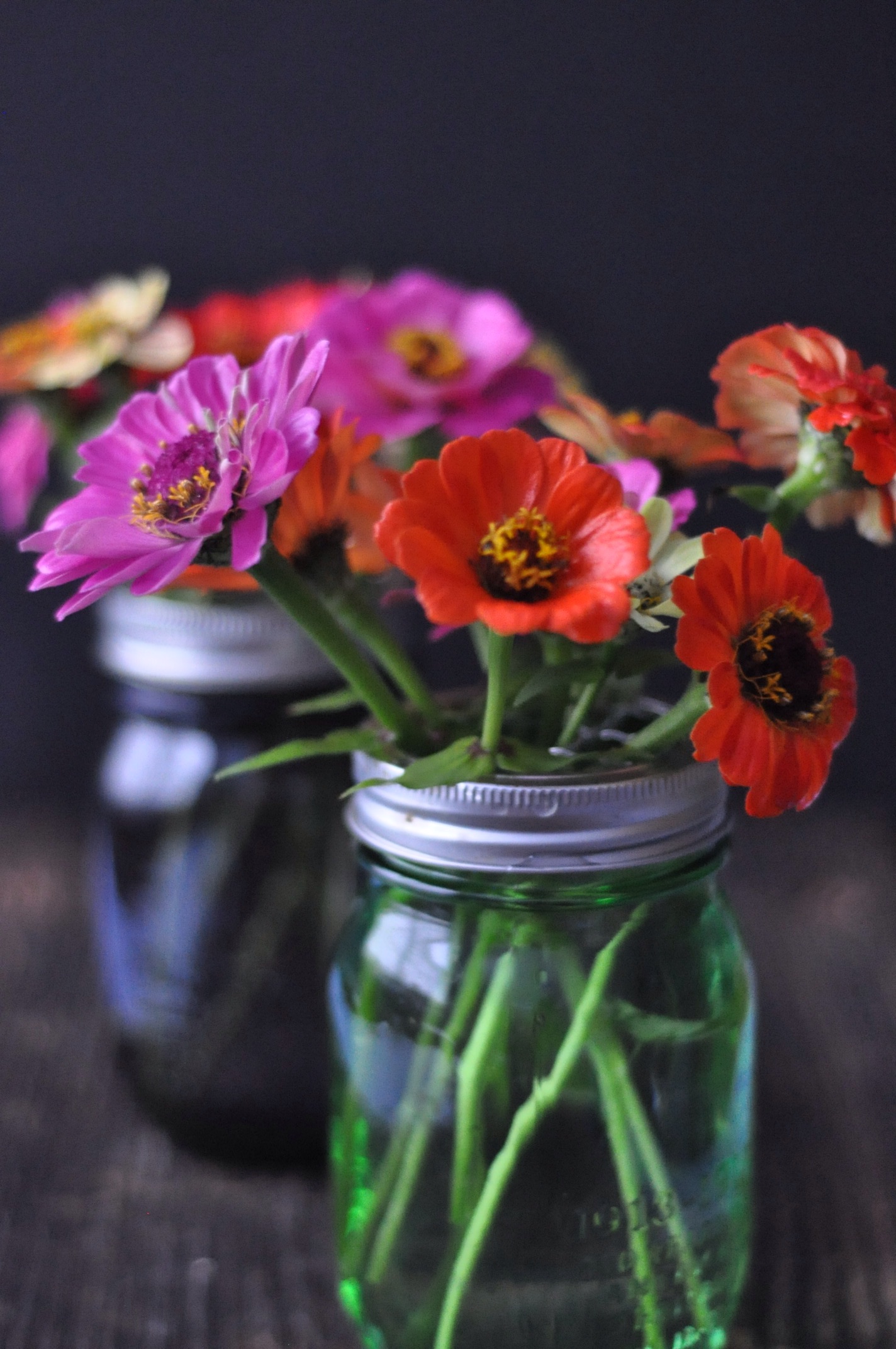 And finally in my kitchen we have what is probably the last of the zinnia from my garden.  With the temperatures cooling off at night and a long hot summer the plants are looking sickly.  I’ll miss them cheering up my kitchen, but spring is close….or so I would like to think!  After all we start our garden seedlings in February, only three months from now!