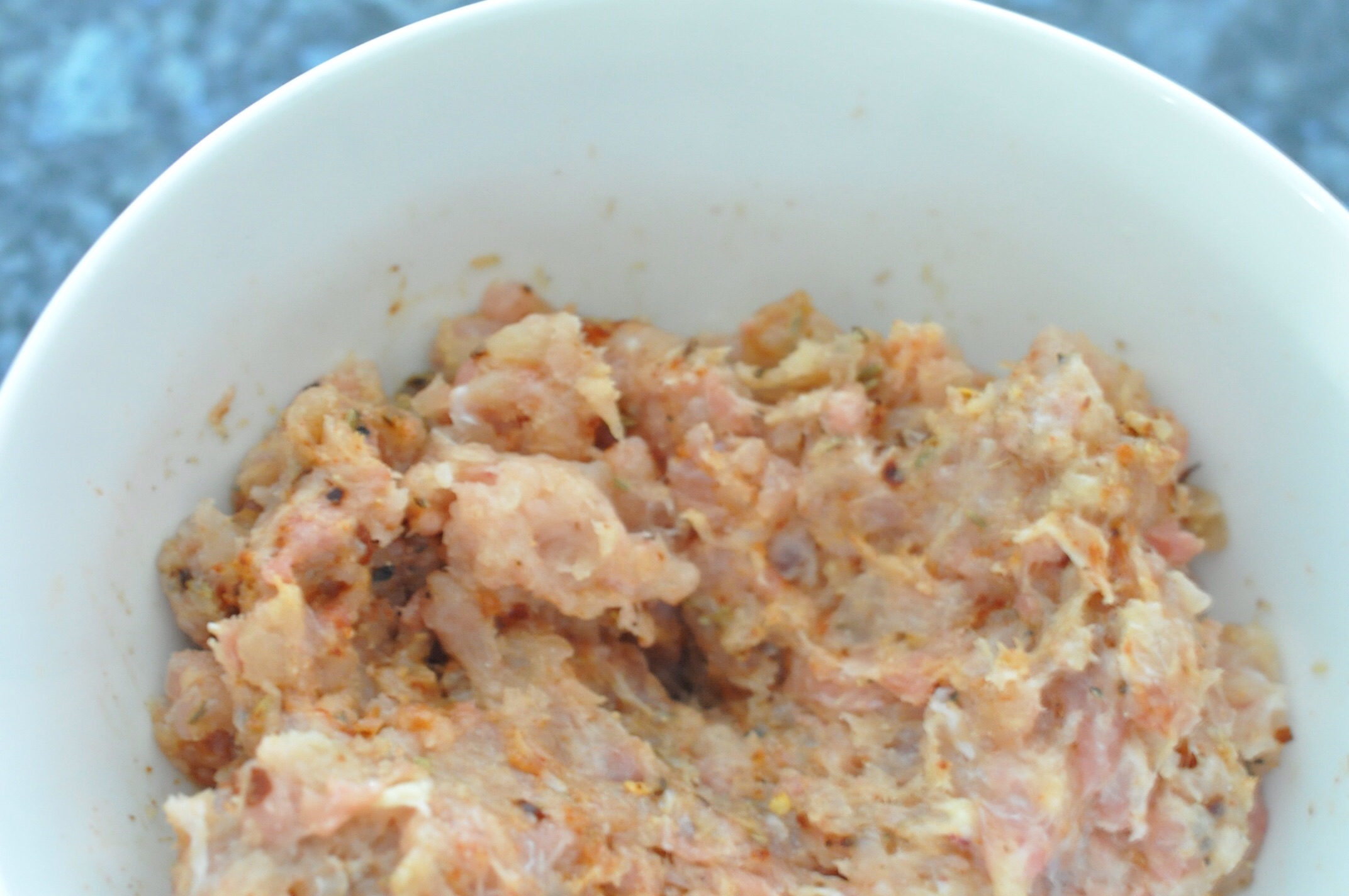Combine all the ingredients and use your hands to thoroughly incorporate the spices into the meat. You can use it immediately or let the flavors increase while resting in the fridge for a few hours. Whichever way you cook it make sure to cook the chicken thoroughly (internal temp of 165 degrees).